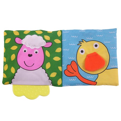 Към книжката има малка чесалка-гризалка за бебешки зъбки, изработена от безвреден материал.