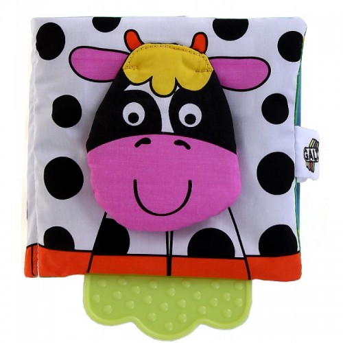 Страниците са подплатени и изработени от мек и шумящ материал, което привлича вниманието на детето. При разгръщане на всяка страница се разкриват различни картинки на животни с релефни елементи, изработени от разнообразни, текстилни текстури, за да стимулират детските възприятия и любопитство. Книжката издава "писукащ" звук, когато детето натисне главата на Кравичката.