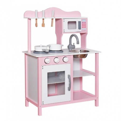 Детската дървена кухня, съобразена изцяло с ръста на детето. Кухнята разполага с много копчета, врати и подвижни елементи, които максимално наподобяват стандартна кухня. Кухненският център е чудесен за подарък и е се впише перфектно интериора на детската стая.Характеристики: