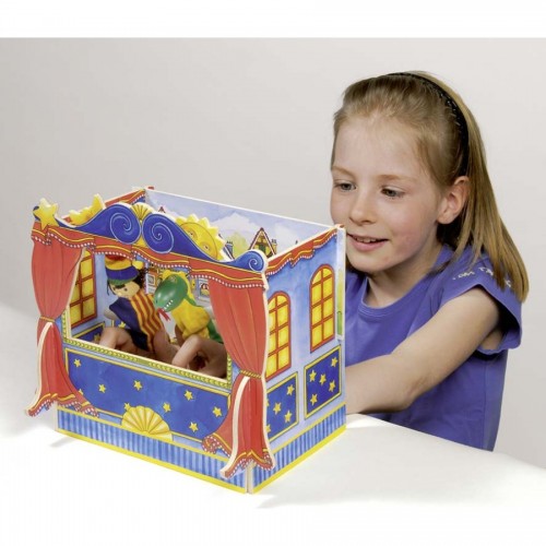 Представете своя спектакъл с кукли, изполвайки този фантастичен макет на куклен театър. С помощта на пет различни фона, вашето представление ще изглежда като на световна сцена.Характеристики: