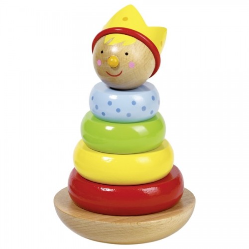 Един малък дървен принц ще ви помогне да научите основните цветове, както и да подреждате елементите по големина. Той се усмихва закачливо, защото ви е приготвил изненада - дъното му е заоблено и се клатушка при всяко движение, така че ще ви трябва допълнителна сръчност да нанижете всички 5 елемента.Характеристики: