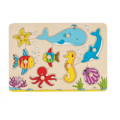 Забавен и образователен, пъзелът с дръжки „Морско дъно“ на Goki винаги ще носи радост и много часове забавление на детето ви. Пъзелът е направен изцяло от първокачествен дървен материал.