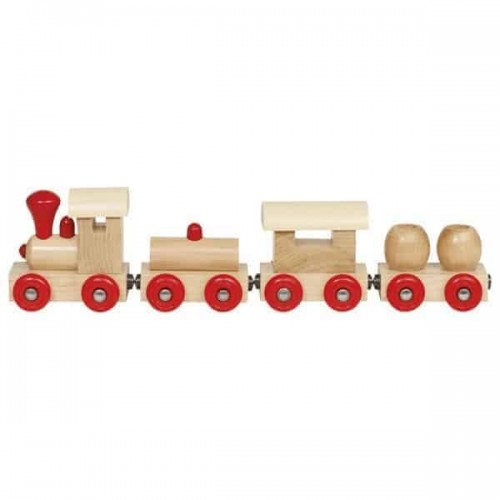 - Дървен детски влак с магнитно свързване на вагончетата
