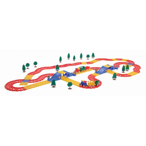 Комплектът позволява детето да изгради собствена железопътна мрежа за придвижване на влакове и да избере формата на трасето. В комплекта са включени 2 влакчета, всяко от които се състои от локомотив и две вагончета. Разнообразието от елементи дава възможност за множество комбинации и часове забавна игра.
