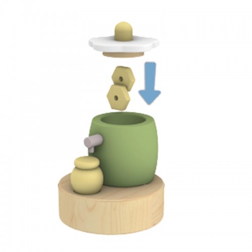 Тази интерактивна играчка включва две пчели, дърво, платформа, дозатор за мед, буркан с мед, рамка с пчелна пита, две парчета пчелна пита, две парчета хляб, една тава за препечен хляб, един килим и една фигурка. Всичко това добавя часове след часове забавление в ролеви игри за детето.Характеристики: