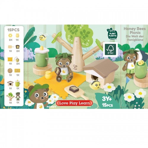 Hape Интерактивен дървен комплект Пикник с пчели и кошер