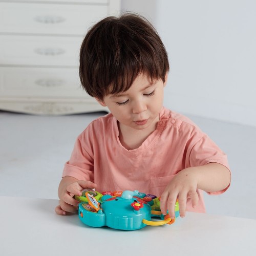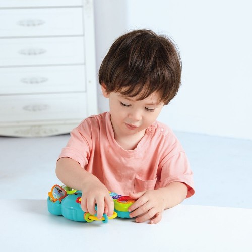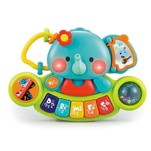 Пианото разполага с редица интерактивни и движещи се части, които помагат на детенцето да подобри сръчността си.Характеристики: