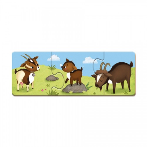Пъзел - игра на асоциации от картон на тема "Селскостопански животни", съставена от 30 елемента. Бебетата животни са загубили родителите си. Помогнете им да се съберат отново!
