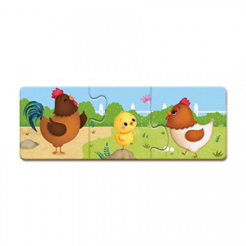 - Трио пъзелът ще помогне на децата да изследват и да се запознаят със света на животните и техните семейства (напр. пилето с петела и кокошката)