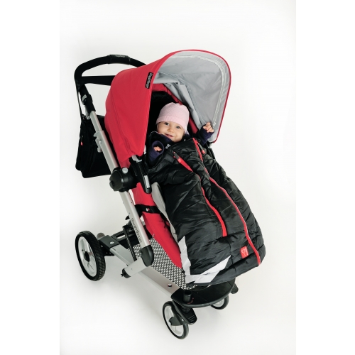 Висок клас чувал за количка с модерни цветове и красиви шевове. Хастарът е от мек полар. Има 8 прореза за колани и на практика може да се използва във всяка количка, която се предлага на пазара. Четири вертикални точки в областта на раменете позволяват по-практично и удобно поставяне на чувала, както за малко бебе, така и за по-голямо дете. Има 2 централни ципа - един за отваряне и затваряне и втори за корекция на ширината. Има рефлекторни ленти отпред, паралелно на циповете. Отваря се с цип при краката.