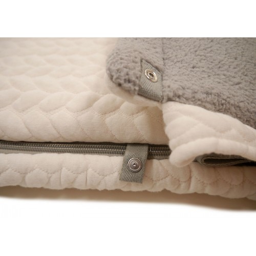 Чувалчето Knitty е с красив, плетен дизайн, пухкава вътрешна част и страничен цип. Благодарение на велкро лепенките, горната част на чувала може да се оформи като качулка.Характеристики:
