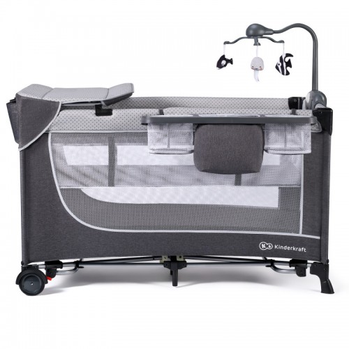 KinderKraft Сгъваема Бебешка кошара с аксесоари Leody full, сива