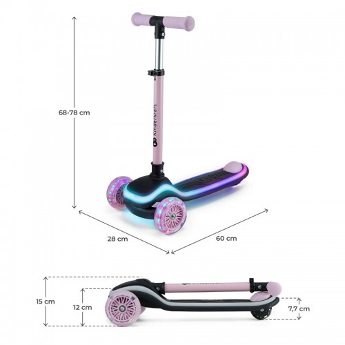 Raket е LED тротинетка с три колела, създадена за деца над две годишна възраст. Благодарение на системата за управление, базирана на баланса на тялото, тя подпомага развитието на баланса и координацията при децата. Моделът разполага с осветена платформа LED светлини с 20 цветни режима и колела с RGB LED диоди, които светят по време на движение. Сгъва се само за 2 секунди, а регулируемата дръжка следва растежа на детето. Има стабилна конструкция, неплъзгащи се дръжки и спирачка с метална вложка.Характеристики: