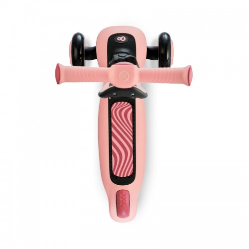 Halley 2 в 1 комбинира детска тротинетка и колело за балансиране с три гуми. Само с едно движение седалката на играчката за баланс се прибира към кормилото и Halley се превръща в забавна тротинетка с широка основа и светещи предни колела. Дръжката се регулира във височина в три позиции.Характеристики:
