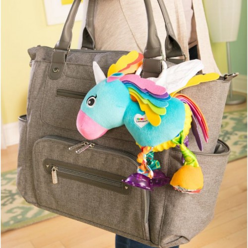 Вашето бебе ще обича радостта донесена от играчката Дарси Дарлинг на Lamaze. Този колоритен приятел с дълга грива като дъга и сладките малки потропващи копитца я правят забавна за игра и любим приятел за заспиване.