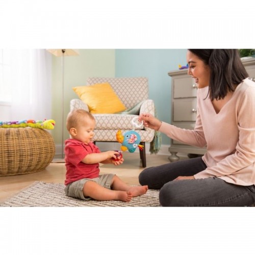 Слончето Ели на Lamaze е една играчка за развитие, която разполага с много забавни неща, които вашето малко бебе да проучва. Стиснете крака на Ели, за да покажете на бебето как прави забавен шумкащ звук.