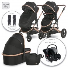Бебешка комбинирана количка с кош за новородено, покривало за крачета, чанта за аксесоари и мрежа против насекоми включени в комплекта. Количката е с алуминиева рама, реверсивна седалка и голям кош за багаж.Характеристики: