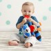 Малките ръчички ще са постоянно заети с този цветен герой, ще изследват цветове, различни тъкани и звуци. Идеална за забавление вкъщи или навън, тази играчка подрънква, шумоли и има мека чесалка за зъбки. Чесалката може да се извади и да се носи на китката като гривна.Характеристики: