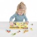 - Съпоставяйки двете картинки детето ще развива своите умения да съпоставя и да слуша с този невероятно забавен дървен пъзел