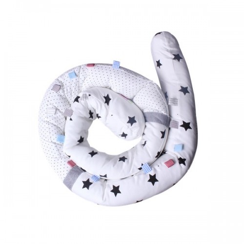 Може да се използва като обиколник за бебешкото креватче или да послужи за активна гимнастика, тъй като притежава много етикети, различни на допир, които стимулират бебешките възприятия.
