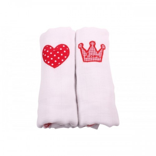 Комплект от 2 меки и стилни пелени, изработени от 100% памук. Различни десени. Бродирани красиви и изящни апликации. Подходящи за машинно пране.
