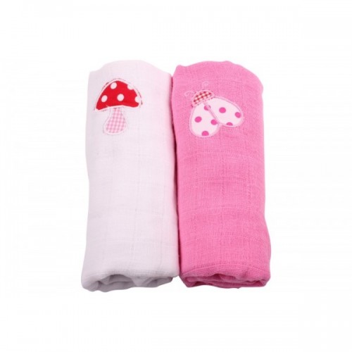 Комплект от 2 меки и стилни пелени, изработени от 100% памук. Различни десени. Бродирани красиви и изящни апликации. Подходящи за машинно пране.