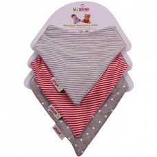 Красив и практичен начин да запазите бебешките дрехи сухи,като същевременно съчетавате лигавника с облеклото на детето. Комплект от 3бр. Минене бандана лигавник в 3 различни цвята с интересни десени на звездички. Лицевата страна на лигавника е изработена от памучно трико, докато хастарът е от мека хавлия, която предотвратява мокренето на бебешките дрешки. Банданата се закопчава с уникална по рода си велкро лепенка, която е с гладка повърхност и не би могла да нарани детето.