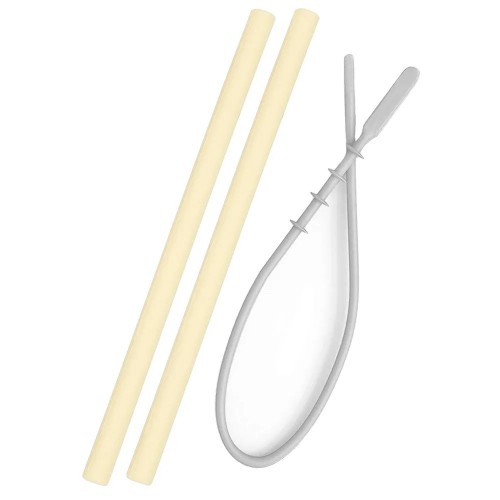 Minikoioi Flexi Straws Комплект силиконови сламки 2 броя с четка Yellow