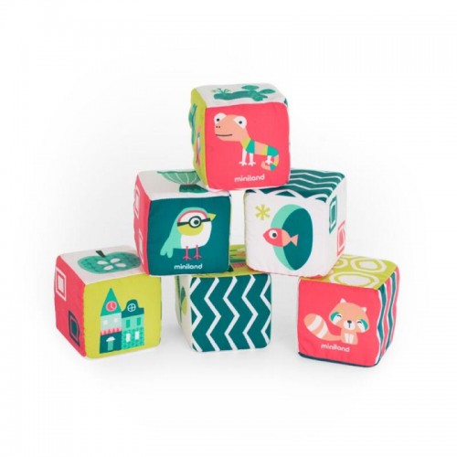 Miniland Eco Меки и цветни дрънкащи кубчета