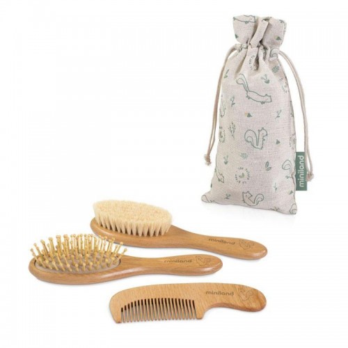 - Съдържа 2 четки и гребенче, изработени от естествено дърво, за деликатна грижа за вашето бебе