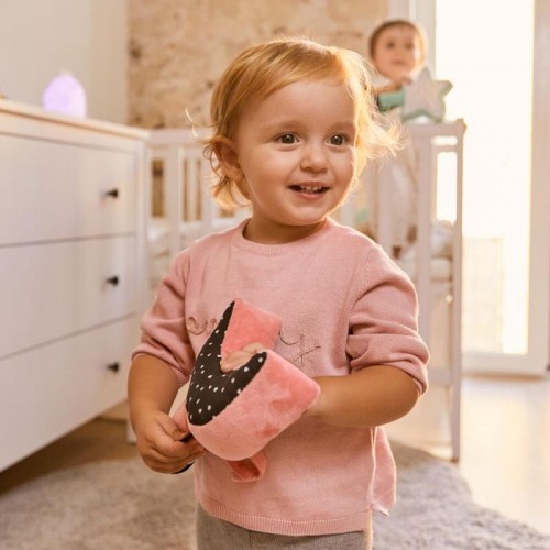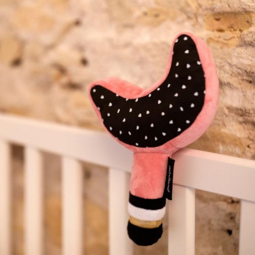 - Включва практична лепенка, която позволява закрепване към креватчето или количката, така че детето винаги да я вижда