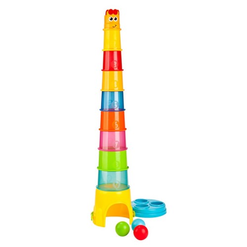 Miniland Baby Кула от кофички Stack and Roll Малките деца ще се забавляват като строят кула от кофички, която после ще събарят.Кофичките Stack and Roll на Miniland Baby могат да бъдат подредени в 80 см кула с помоща на 10 те номерирани чашки и кофичката.Чашките имат дупки през които децата да пускат топчетата, така че да стигнат чак до земята.Всяка втора чашка е прозрачна, така че детето да гледа как минава топчето през кофичките.Различните компоненти позволяват на Вашето дете да се забавлява по различни начини.