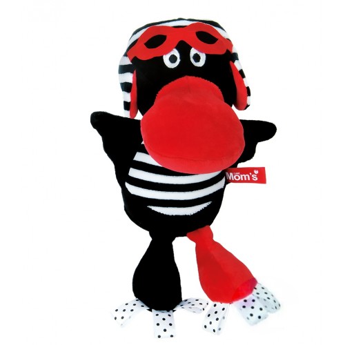 Контрастиращите цветове и меката плюшена материя на играчката привличат вниманието на детето и стимулират възприятията му, както и способността му да се концентрира. Има нежна гризалка, която ще масажира чувствителните бебешки венци, а като стиснете човката Патето издава писукащ звук.Характеристики: