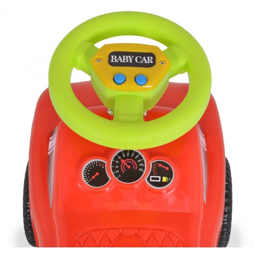 - Детската пластмасова кола за яздене е с дизайн, който допринася за развитието на моториката и баланса на детето.