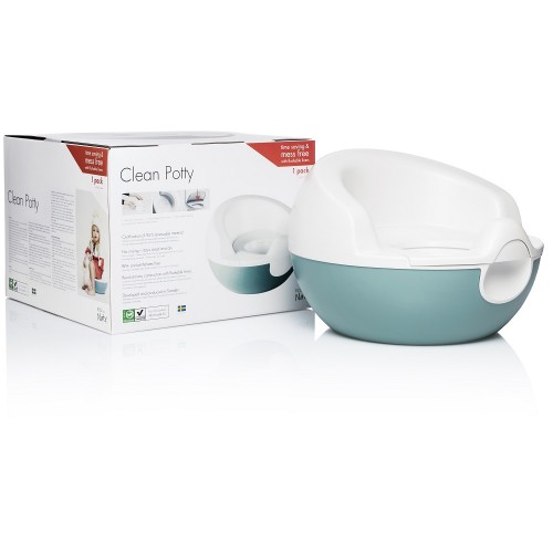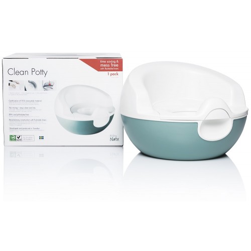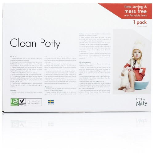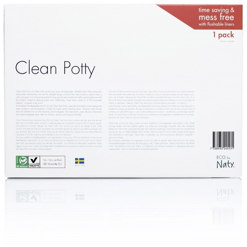 С Naty Clean Potty отучването от пелените е много по-комфортно, както за родителите, така и за децата. Почиства се бързо и без усилия, благодарение на революционния си дизайн и системата за почистване с биоразградими, подходящи за изхвърляне в тоалетната пликчета.