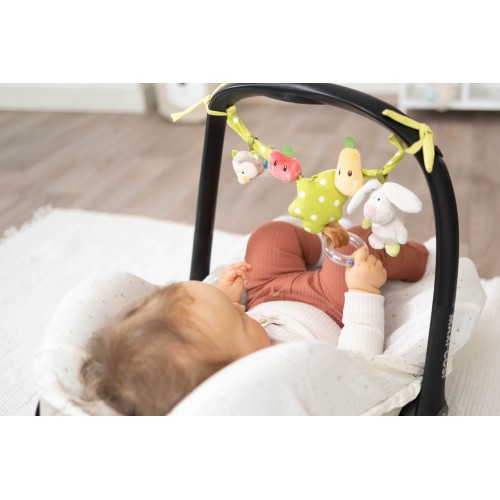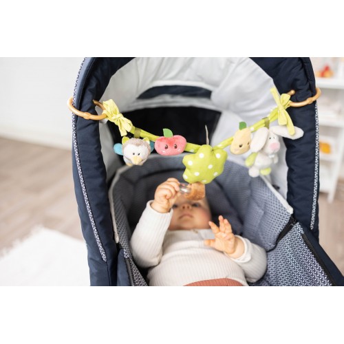 Забавна играчка - дрънкалка с 5 елемента, подходяща за захващате към коша на количката или към столчето за кола.