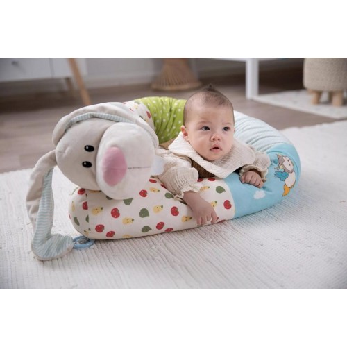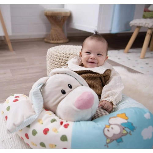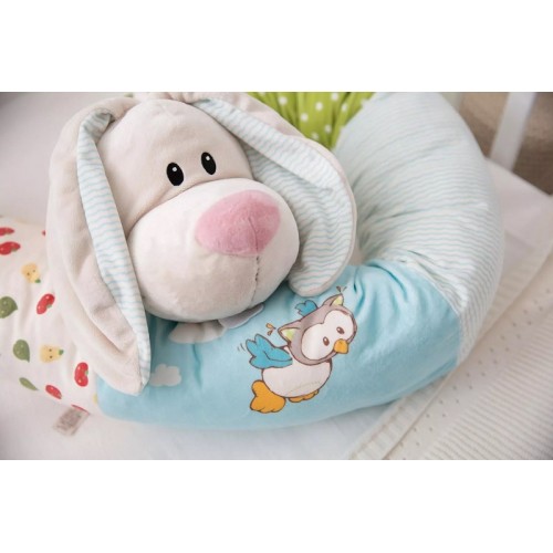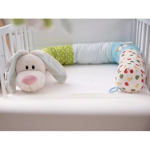 Бебешкият обиколник е с дължина 180 см, изработен е от пухкав мек плюш и създава на бебето чувство за сигурност. Може да се използва в кошарата, върху килимчето за игра или да се комбинира с активната гимнастика. Предпазва от ръбове, служи като преграда и спира течението. Завладяващият дизайн със зайче с дълги висящи уши и дружелюбно лице бързо ще превърне обиколника в любим на бебето, а вградената музикална кутия с мелодията на "Приспивна песен на Моцарт" ще успокоява и приспива мъника. Музикалната кутия може да се маха. Обиколникът има и практична чанта за носене.Характеристики: