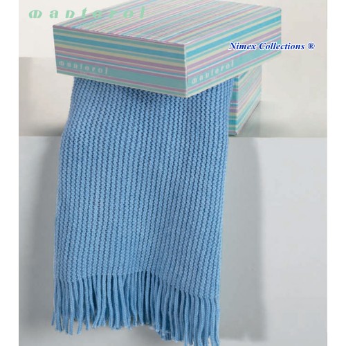 Бебешко одеяло, арт. „Бейби комета“, размери 70 х 100 см. Състав - 100% акрил, Класическо одеяло. Трикотаж, конфекция- ресни по двете къси страни. Един дюсов десен в два цвята – син и беж , опаковка – подаръчна кутия. Произход- Испания. Част от „Колекции Нимекс”.
