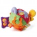- Съчетава мекия и нежен на допир плюш с различни материи, ярки цветове, шумящи части, дрънкалка и гризалка.