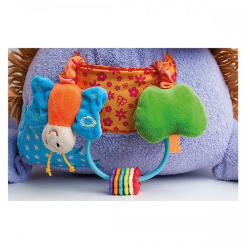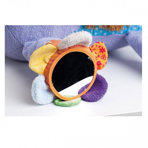 - Съчетава мекия и нежен на допир плюш с различни материи, ярки цветове, шумящи части, дрънкалка и гризалка, огледала и закопчалки.