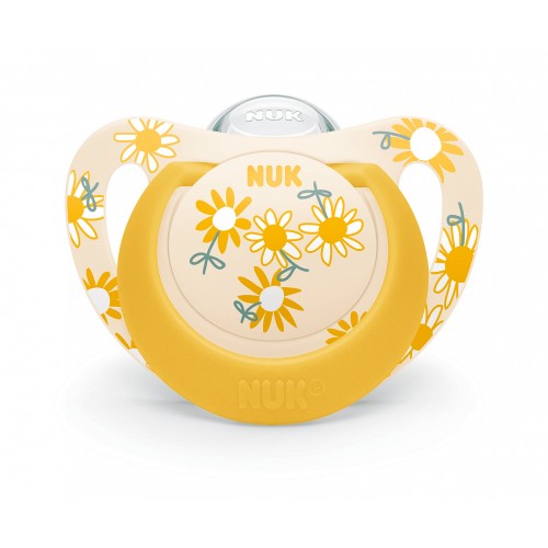 Залъгалката е верен приятел на бебето, който му дава усещане за сигурност и спокойствие. Дори новите лица, звуци или предмети може да разтревожат малкото дете. Сукането на залъгалката е неговия начин да се успокои.Залъгалката Star е с усъвършенствана NUK форма – оформена като майчиното зърно по време на кърмене, пасва оптимално на бебешката уста. Плоска и широка в основата си – намалява натиска върху зъбите и челюстта.