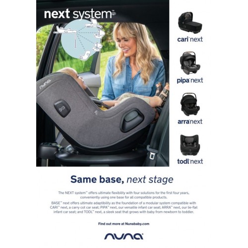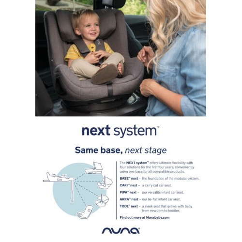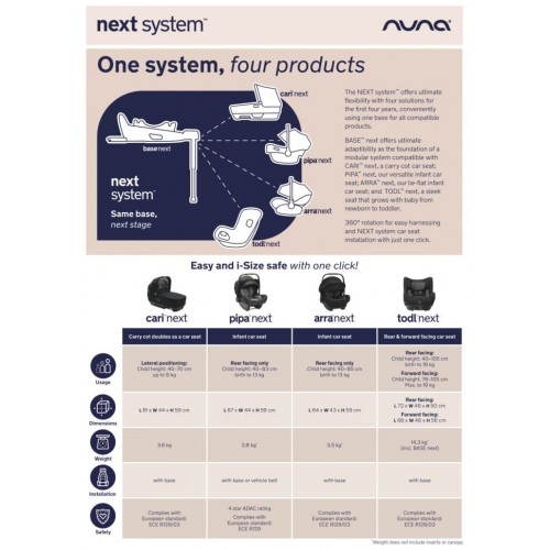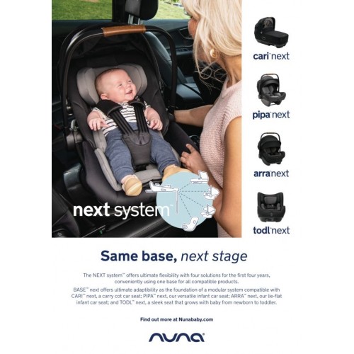 - Съвместима е с: CARI Next – кош за новородено, стол за кола PIPA Next, стол за кола ARRA Next, стол за кола TODL Next