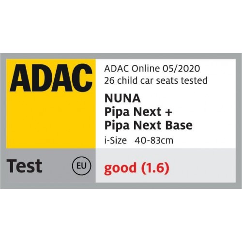 - Оценка 4 звезди за столчета за кола на ADAC 05/2020 – оценка „Добър“ (1.6) със стол за кола Pipa Next (0-13 кг)