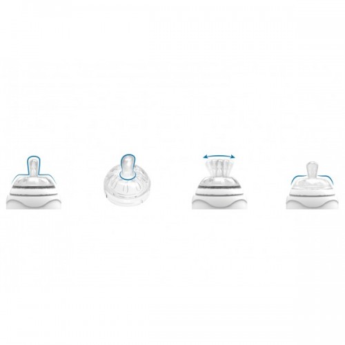 - Накрайникът на биберона е плосък и по-дълъг, за да се улесни естественото движение на езика.