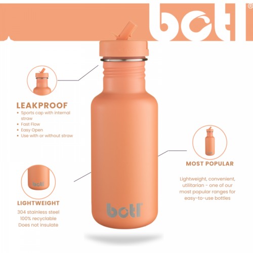 - Класическа спортна капачка, изработена от полипропилен без BPA/BPS, без токсини със силиконов пръстен, който се използва в хранителната промишленост. С включена вътрешна сламка, която може да се махне. Използвайки я, не се налага да накланяте бутилката, когато пиете