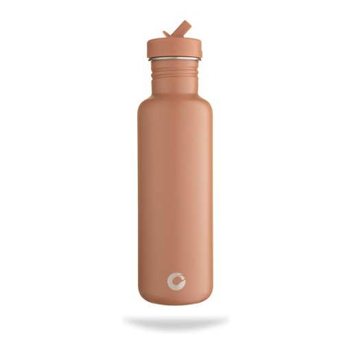 Права бутилка, изработена от неръждаема стомана с дизайн с плавни, изчистени линии и спортна капачка.
