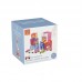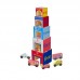 Красив комплект дървени кутии-кубчета с картинки на различни сгради и с различна цифра от 1 до 5. Към всяка кутия има и малка дървена количка, която отговаря на съответната сграда: