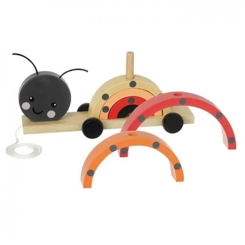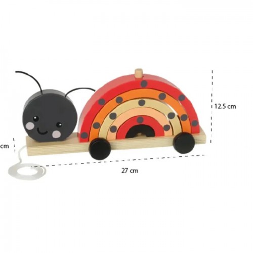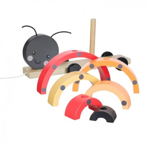 Красива дървена играчка за дърпане Калинка с 6 подреждащи се арки с различен брой точки на всяка.
