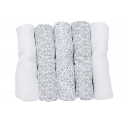 Motherhood Пелени от муселин 5 броя Blue Fishes