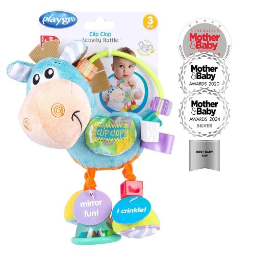Дрънкалка кончето Хоп Троп с шест забавни активности, които бебчето да изследва. Предлага разнообразие от звуци, текстури и форми за подобряване фината моторика.